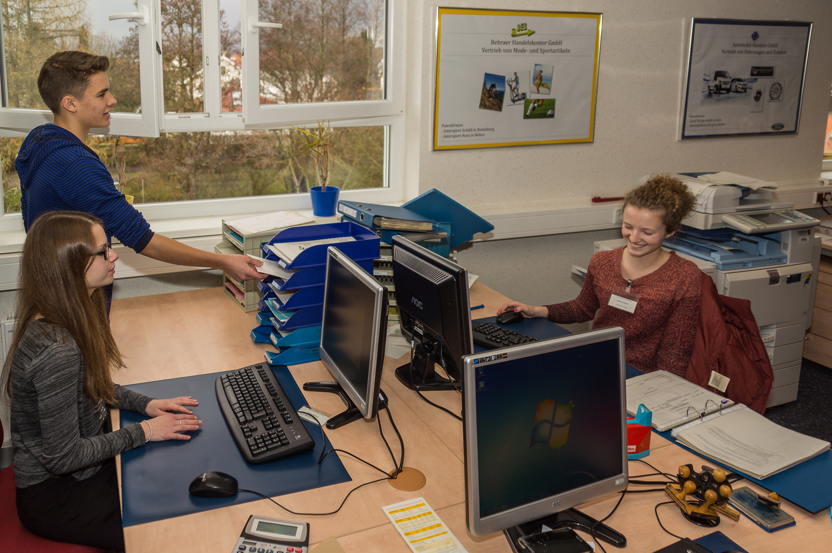 Heute wird unser Großraumbüro, in dem beide Übungsfirmen zeitversetzt